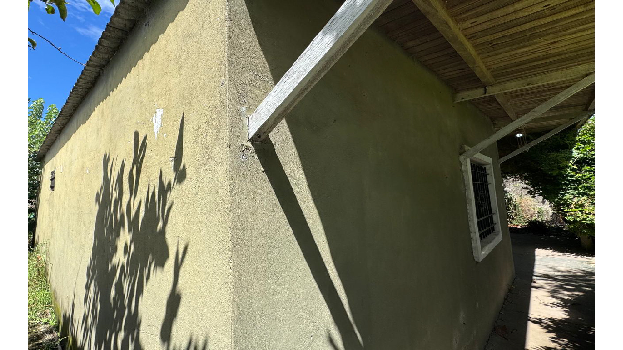 Cuenta con techo de chapa galvanizada y cielorraso de machimbre.