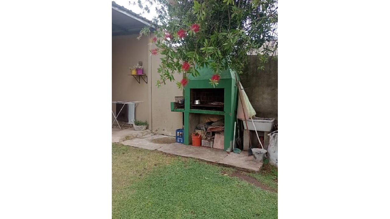 Tiene un pequeño patio en el frente, con espacio para un vehiculo; y otro patio mas amplio atrás, con un galpón en el fondo.