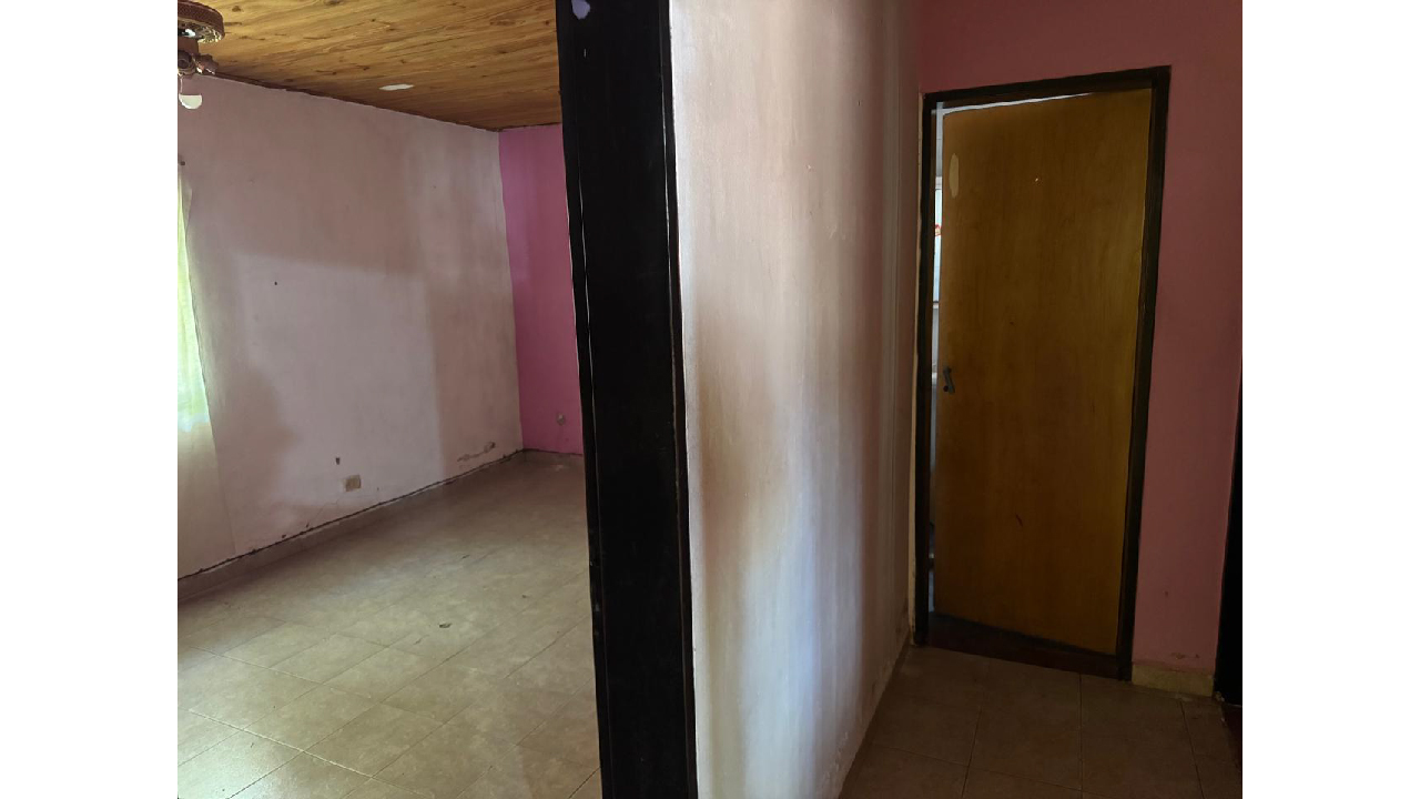 Cuenta con techo de chapa galvanizada y cielorraso de machimbre.
