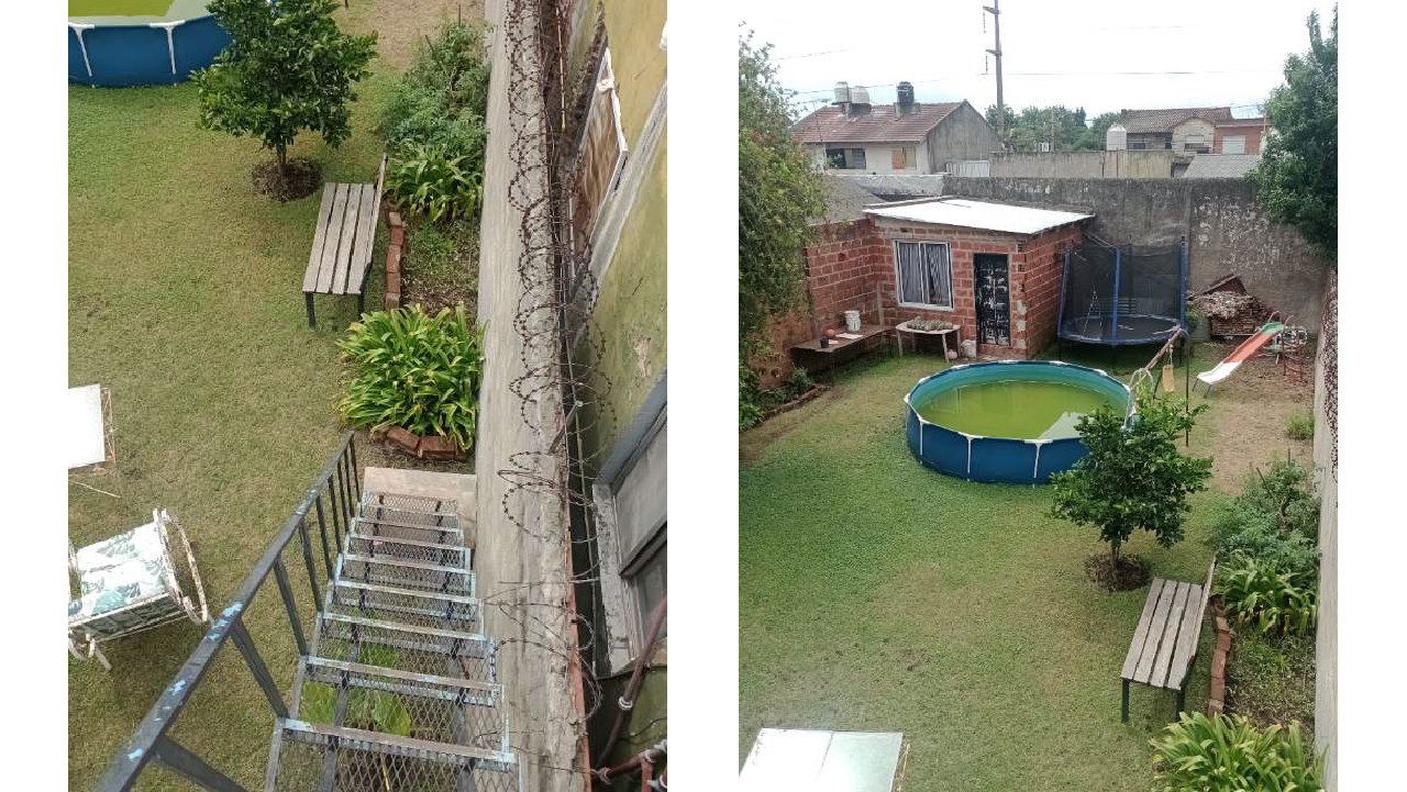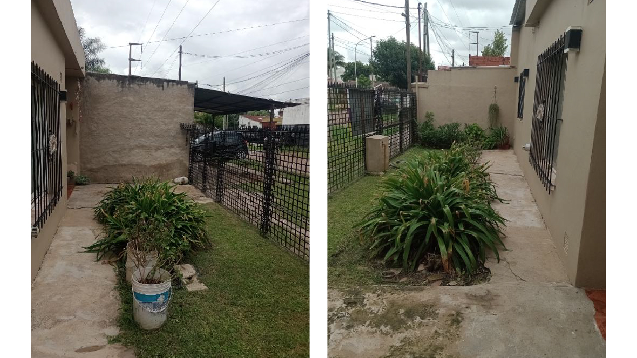 Tiene un pequeño patio en el frente, con espacio para un vehiculo; y otro patio mas amplio atrás, con un galpón en el fondo.
