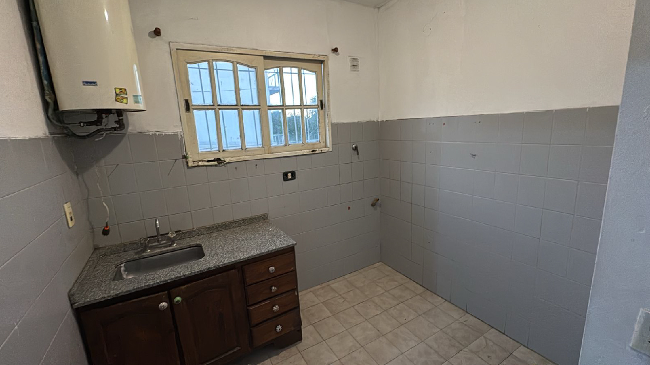 Cocina de 3x2,5m, con bacha granítica, bajo mesada y termotanque eléctrico de 75 litros.